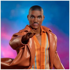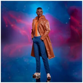 O boneco Barbie The Fifteenth Doctor representa o Décimo Quinto Doutor de Doctor Who com visual icônico da 14ª temporada da série. O rosto foi esculpido e pintado à semelhança do ator Ncuti Gatwa. O personagem veste camisa listrada colorida, calça azul ajustada e longa jaqueta marrom, compondo um look marcante e contemporâneo. Ele usa ainda tênis brancos e colar, reforçando o estilo fashion do Doutor. ? O produto inclui base para o boneco e Certificado de Autenticidade, sendo indicado para colecionadores e fãs a partir de 6 anos.