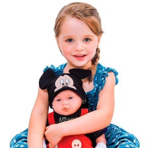 Boneco Bebê - Classic Dolls Disney - Recém Nascido - Mickey - Roma: esse lindo boneco traz a doçura do ratinho mais famoso da Disney. Além da roupa personalizada inspirada no personagem Mickey, o boneco também vem com chupeta e uma certidão de nascimento para registrar o bebê. O Boneco Classic Dolls Mickey Mouse possui membros em vinil e corpo macio preenchido com fibra sintética e algodão. As crianças vão se divertir de montão com a boneco recém-nascido inspirada na Mickey Mouse. INFORMAÇÕES: • Produto: Boneco Classic Dolls Mickey Mouse • Marca: Roma Brinquedos • Coleção: Classic Dolls Recém Nascido • Linha: Disney • Tipo: Boneco bebê com acessórios • Categoria: Bonecos e Cia • Tamanho (C x A x L): 23 x 40.5 x 13 cm • Volume (Peso): 0.580 kg • Conteúdo: Boneco, chupeta e certidão de nascimento • Recomendação: para crianças a partir de 03 anos de idade ESPECIFICAÇÕES: • Referência: 5161 • Código de Barras: 7896965251617 • Embalagem (C x A x L): 29.7 x 42 x 16.2 cm • Embalagem (Peso): 1.010 kg • Material / Composição: - Boneco: membros em vinil e corpo macio em algodão e fibra sintética - Roupinha: Algodão e Poliéster - Acessórios: Plástico • Registro: 03129/2019 • Certificado: Órgãos Autorizados - OCP´S (Organismos de Certificação de Produtos) BENEFÍCIOS DE BRINCAR: • Eleva a autoestima • Exercita a memória • Estimula o raciocínio • Exercita o imaginário • Desenvolve a criatividade • Desenvolve percepção visual • Desperta a atenção e curiosidade • Desenvolvimento neuropsicológico • Estimula habilidades motoras básicas • Incentiva a comunicação e linguagem • Desenvolve aspectos emocionais e afetivo • Estimula o reconhecimento de formas e cores AVISO: • As imagens são meramente ilustrativas • Os pesos, tamanhos e medidas são aproximados • As cores e estampas dos produtos podem ter variações • As informações são de responsabilidade do fabricante ou fornecedor