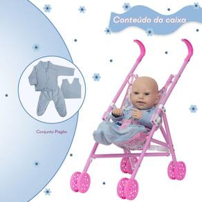 Boneco Bebe Reborn Menino Realista Com Carrinho Pijama Azul