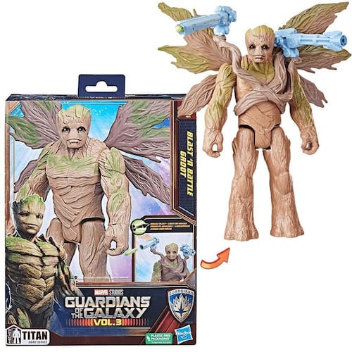 Blast 'n battle groot: conforme ele amadurece com habilidades mais avançadas, groot ajuda a construir luganenhum e protege seus companheiros guardiões. Blast 'n battle groot foi projetado e inspirado nos guardiões da galáxia vol. 3. Fique de olho em brinquedos e bonecos de ação mais exclusivos da marvel cada um vendido separadamente. Sujeito à disponibilidade .
