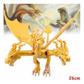 Boneco Blocos de Montar Grande Rei Ghidorah 3 cabeças 26 Centímetros Inimigo Godzilla Tamanho aproximado 26 cm incluindo asas e caldaCERTIFICADO PELO INMETRO 302/2021Produto de alta qualidade e durabilidade Marca: World Minifigures