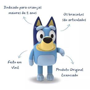 Com o boneco da Bluey ou da Bingo a brincadeira das crianças se tornará muito mais divertida, com braços articulados e medindo 21cm, a diversão estará garantida ao lado dessas cachorrinhas que tem uma imaginação sem limites e adoram transformar a rotina em aventuras lúdicas.*As cores do produto podem variar das apresentadas nas fotos. Marca: Elka Idade recomendada: A partir de 2 anosComposição / Material: Vinil Atóxico A ação do brinquedo depende de pilha/bateria: NãoBrinquedo com luz: NãoBrinquedo com som: NãoBrinquedo com voz: Não Conteúdo da Embalagem: 1 BonecoDimensões aproximadas do Produto: Altura 21cm