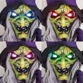 Luzes Multicoloridas nos Olhos: As luzes multicoloridas nos olhos da bruxa criam um efeito mágico e hipnotizante, adicionando um toque de mistério à sua decoração.