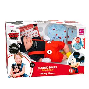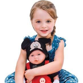 O boneco recém-nascido da linha Classic da Roma, é fabricado com materiais de qualidade, garantindo durabilidade e resistência durante o uso. Inspirado no personagem Mickey Mouse, este lindo boneco está vestindo uma camiseta preta com estampa com o escrito "Mickey Mouse" na cor branca, um short com dois botões estampados na frente e suspensórios, uma touca com o rosto e orelhinhas do Mickey, luvinhas nas cores branca e meias nas cores amarela. Para completar a diversão, ele conta com um pijama e gorro na cor azul claro repleto de estrelas de diversas cores, uma chupeta na cor vermelha e uma certidão de nascimento, deixando a brincadeira ainda mais real. Além disso, o tronco do boneco é feito de tecido e enchimento e o restante do corpo em vinil que possui um cheirinho agradável. As meninas vão se encantar ao cuidar desse boneco super fofo!