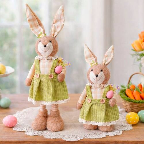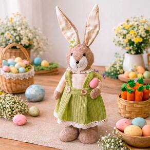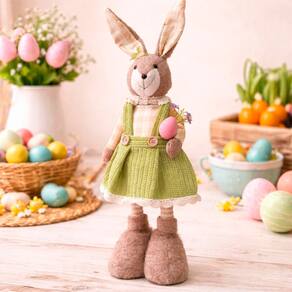 Deixe sua decoração de Páscoa ainda mais charmosa com esta linda boneca coelha decorativa, com pernas ajustáveis que permitem diferentes posições, trazendo versatilidade e destaque ao ambiente