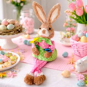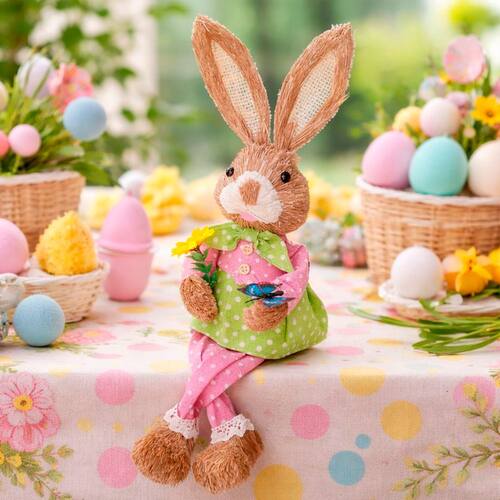 Encante sua decoração de Páscoa com este lindo boneco de coelho com cenoura, ideal para criar um ambiente alegre, acolhedor e temático. Com 45 cm de altura e pernas maleáveis, ele pode ser posicionado sentado em prateleiras, cadeiras, sofás, mesas ou vitrines, trazendo charme e destaque ao espaço