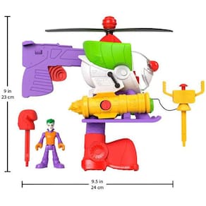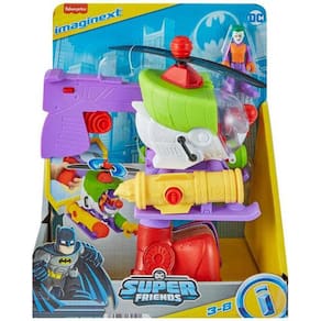 Características: Conteúdo da Embalagem: 1Helicóptero, 1 Figura do Coringa, 1 Acessório Projétil Levante a hélice para transformar o helicóptero em um robô de 25,4 cm de altura , a figura do Coringa cabe dentro do cockpitAperte a alça para girar as hélices e pressione os Power Pads para lançar os projéteis