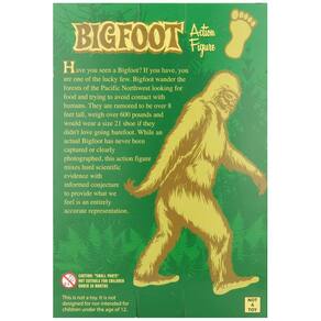 — Este boneco de ação Bigfoot de vinil rígido de 7-1/4" de altura é a coisa perfeita para se esconder nos arbustos do seu quintal