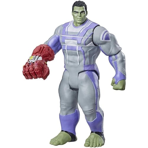 - Hulk sai para a ação de Avengers: Endgame Esta figura de 6 polegadas apresenta um design inspirado na aparência do Hulk em Avengers: Endgame, com vários pontos de articulação e um acessório inspirado no personagem.