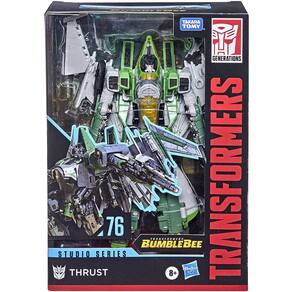 A Studio Series sempre permitiu que os fãs passassem pela tela grande e construíssem a última coleção transformers inspirada em cenas icônicas de filmes do universo cinematográfico Transformers. Agora, a linha Studio Series está se expandindo para incluir os momentos épicos e personagens do clássico 1986 The Transformers: The Movie, trazendo aos fãs uma nova série de figuras inspiradas na tela para coletar! (Cada um vendido separadamente. Sujeito à disponibilidade.) Este Studio Series 76 Voyager Class Transformers: Bumblebee inspirado em Thrust se converte de robô para modo tetrajet em 30 passos. Remova o cenário para mostrar Thrust na cena de Cybertron Falls. Na cena de Cybertron Falls de Transformers: Bumblebee, a resistência Autobot recua para escapar do planeta enquanto Cybertron se enquadra sob o controle de Decepticon. Empuxo e os buscadores explodem a plataforma de lançamento autobot com fogo de mísseis para impedir sua fuga. Pose a figura com os acessórios incluídos blaster e Null Ray e imagine recriar este momento clássico do filme! Transformers e todos os personagens relacionados são marcas comerciais da Hasbro.