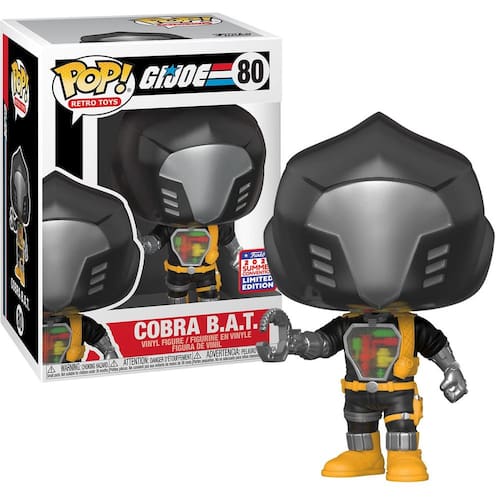 Este Battle Android Trooper recebeu suas ordens e está pronto para agir contra os inimigos de Cobra em sua coleção G.I. Joe. O exclusivo Pop! do FunKon de 2021 Cobra B.A.T. ' O design é uma reminiscência da figura de ação dos anos 1980. A figura de vinil tem aproximadamente 4 polegadas de altura.