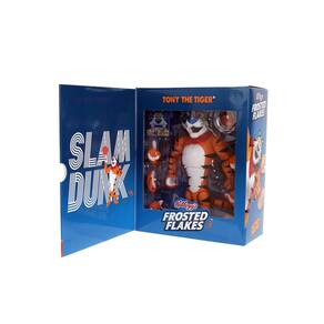 - Acessórios premium: inclui mãos intercambiáveis, uma caixa de cereal Kellogg's Frosted Flakes, uma tigela de flocos foscos Kellogg's com colher e uma bola de basquete com um efeito giratório — perfeita para recriar seus lendários comerciais