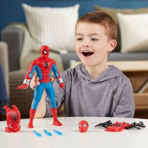 Marvel Boneco do Homem-Aranha Thwip Explosão do Homem-Aranha com acessórios, brinquedos de super-herói em escala de 28 cm para crianças a partir de 4 anos - Boneco de ação do Homem-Aranha Maravilhoso de 27 cm: Imagine uma grande ação e aventura com este brinquedo do Homem-Aranha em grande escala, com design clássico e decoração do terno do Homem-Aranha vermelho e azul - Acessórios inspirados em personagens: este boneco do Homem-Aranha vem com vários acessórios, incluindo uma peça de armadura de peito, capacete, trenó aranha flutuante e 3 projéteis de teia - Torça para empurrar: puxe o braço esquerdo deste brinquedo Marvel para torcer a figura na cintura, então solte e veja como o tronco se encaixa para trás e o braço direito levanta para detonar um projétil de teia - HOVER SPIDER SLED: Prenda o trenó Aranha Hover aos pés do boneco de super-herói e imagine deslizar pelo ar, ou guarde os 2 projéteis adicionais no trenó e prenda-o às costas do brinquedo - Estimula brincadeiras imaginativas: os brinquedos Marvel incentivam brincadeiras criativas e imaginativas, para que crianças a partir de 4 anos possam imaginar suas próprias histórias e batalhas com este boneco de ação - Mais para coletar: procure mais brinquedos infantis do Homem-Aranha para construir uma incrível coleção de lançadores de teias do Homem-Aranha - Presentes de homem-aranha para crianças: os brinquedos do Homem-Aranha Marvel para meninos e meninas a partir de 4 anos são presentes legais para crianças Marvel (cada um vendido separadamente. Sujeito à disponibilidade.)