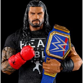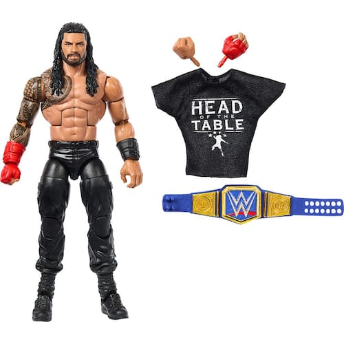 Mattel WWE Elite Collection Conjunto de figuras de ação e acessórios, Roman Reigns colecionável de 15 cm com articulação e peças intercambiáveis - O boneco WWE tem aproximadamente 15 cm de altura - Tecnologia TrueFX altamente detalhada - 25 pontos de articulação - Inclui mãos e acessórios intercambiáveis - Recrie partidas icônicas da WWE