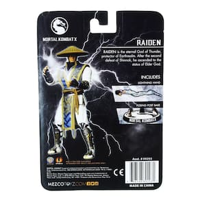 A Mezco apresenta novos bonecos de ação de 3,75 polegadas em sua linha cada vez maior de Mortal Kombat X! Raiden, o eterno Deus do Trovão, vem completo com mãos alternativas precisas, mãos relâmpago alternativas e uma bola relâmpago. Ele também tem um par adicional de mãos de combate. O boneco Scorpion em escala de 3,75" apresenta 23 pontos de articulação, muitos com juntas esféricas, permitindo que ele recrie todos os movimentos e poses que o tornaram parte da lenda dos jogos. Para garantir uma semelhança precisa do jogo, correta nos mínimos detalhes, a premiada equipe de design da Mezco esculpiu digitalmente as figuras usando os arquivos digitais dos próprios desenvolvedores do jogo.