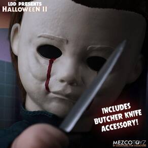 Eles não conseguiram pará-lo... agora ele está de volta! Michael Myers faz um retorno assustador à linha LDD Presents! O pesadelo não acabou quando o perseguidor silencioso volta para o Haddonfield Memorial Hospital para perseguir sua vítima favorita, Laurie Strode. Empunhando sua faca de cozinha exclusiva na mão, Michael está vestido com seu macacão envelhecido com ferimentos de bala manchados de sangue. Sua icônica máscara branca sem expressão apresenta "lágrimas de sangue" fluindo de seus olhos. The LDD Presents Halloween II (1981): Michael Myers tem 26,7 cm de altura e possui 5 pontos de articulação. Ele é embalado em uma caixa de janela cortada, perfeita para exibição.