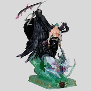 Material: PVC Cor: Multicolorido Tamanho da embalagem: 18 x 15 x 30 cm Peso da embalagem: 1,11 kg Lista de embalagem: 1 x Zoro Action FigureDesign detalhado do Zoro: Esta figura apresenta o Zoro de One Piece, retratado como a versão Soul Reaper. Ele está segurando duas espadas, com uma pose dramática que destaca sua presença poderosa. A figura captura sua expressão detalhada e sua aparência icônica. ', “Material de PVC premium: feito de PVC durável, este boneco apresenta cores vibrantes e detalhes finos. A escultura detalhada realça o melhor da aparência pronta para a batalha de Zoro, tornando-a uma adição de alta qualidade a qualquer coleção de One Piece. “, 'Perfeito para exibição: com 26 cm de altura, esse boneco é perfeito para exibição em prateleiras, mesas ou vitrines. Sua pose ousada e dinâmica, combinada com a base colorida, a torna uma peça de destaque em qualquer coleção de anime. ', 'Ótimo presente para fãs de One Piece: ideal para aniversários, feriados ou ocasiões especiais, esta figura do Zoro é um excelente presente para fãs de One Piece ou itens colecionáveis de anime. Com certeza tornará a coleção de qualquer entusiasta de anime ainda mais completa. ', “Item de colecionador: com incrível atenção aos detalhes, essa figura do Zoro representa um item essencial para qualquer fã de One Piece ou colecionador de anime. A pose dinâmica, combinada com os intrincados detalhes da espada, agrega valor a qualquer exibição.
