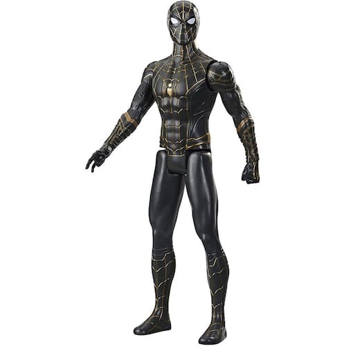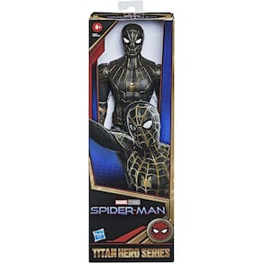 PRODUTO INTERNACIONAL. Prepare-se para embarcar em uma incrível jornada com o Homem-Aranha! Com seu terno preto e dourado, ele está pronto para enfrentar todos os vilões que aparecerem em seu caminho.