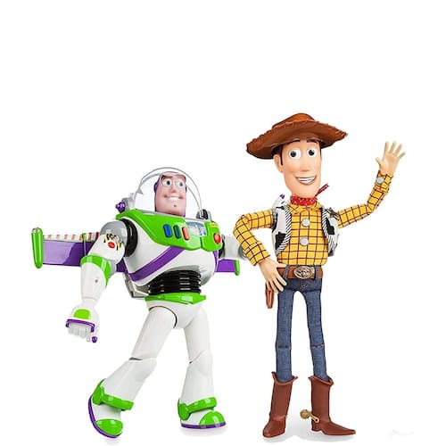 Bonecos Talking Buzz e Talking Woody - Boneco Woody Talking – 40 cm de altura – Puxe o cordão para ouvir mais de 30 frases e sons diferentes – Inclui chapéu de cowboy destacável - Boneco do Buzz Lightyear Falante – 30 cm de altura – Pressione as barras do peito para ouvir mais de 30 frases e sons autênticos – Pressione o botão no jet pack para ativar o botão de karatê do Buzz. Requer 3 pilhas AAA, incluídas - Pacote com 2 Toy Story