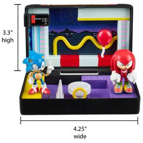 - Sonic & KNUCKLES. Inclui mini figuras dos melhores rivais que se tornaram aliados, prontos para brilhar pela Carnival Night Zone. Minifiguras de Sonic e Knuckles de 3,8 cm com bases fixáveis para colocação na cena.