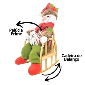 Boneco de Neve Pelúcia Xadrez na Cadeira de Balanço 28cm