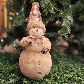 -01 Unidade Boneco de Neve Pelúcia Natal Marrom Claro, Gorro e luvas xadrez 39cm