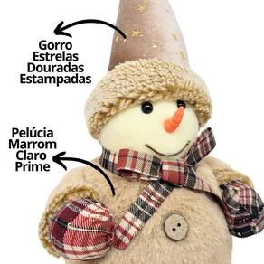 -01 Unidade Boneco de Neve Pelúcia Natal Marrom Claro, gravata e luvas xadrez, gorro estampas estrelas douradas 30cm