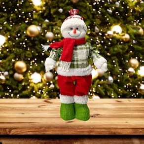 -01 Unidade Boneco de Neve Em pé Pelúcia Funny Tricot Verde e Vermelho 40cm - Magizi
