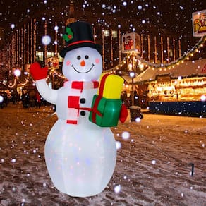 Boneco de neve inflável de 1,8 m com caixa de presente Luzes LED giratórias coloridas infláveis boneco de neve para decorações de Natal Ótimo para decoração de jardim interno e externo - Decorações infláveis de Natal: o Natal está chegando, um boneco de neve inflável fofo de 1,5 m segura um presente e diz olá quando seus filhos ou convidados chegarem à porta ou jardim. Crie uma decoração perfeita para o seu Natal - Luzes rotativas de LED coloridas: o boneco de neve inflável vem com 3 luzes LED coloridas super brilhantes construídas dentro das decorações de quintal inflável. Certamente iluminará seu gramado ou jardim e transformará sua casa em um país das maravilhas do inverno. Adequado para o seu Natal. Ideal para uso ao ar livre, casa, festa, quintal, jardim, gramado, pátio, decoração de varanda e muito mais - PACOTE INCKUDE: o boneco de neve inflável COOLWUFAN inclui um boneco de neve inflável de 1,8 m com 2 sacos de plástico fixo, 2 cordas de fixação, 4 estacas de plástico rígido e um plugue. As cordas de fixação e as estacas de solo o tornam incapaz de voar com o vento. Você pode colocá-lo em qualquer lugar que você quiser - Fácil configuração e armazenamento: o boneco de neve inflável vem com um poderoso ventilador embutido à prova d'água e um plugue com certificação UL. Em apenas alguns segundos, você pode ver o boneco de neve inflável completo depois de conectar a fonte de alimentação. Após o uso, você pode colocá-lo em uma pequena caixa, o boneco de neve inflável é feito de material, você pode usá-lo por muitos anos - Garantia e serviço: Estamos focados em fornecer um ótimo serviço pós-venda por muitos anos. Se você tiver algum problema com nosso boneco de neve inflável de Natal, sinta-se à vontade para entrar em contato conosco através do Amazon Messenger. Responderemos a você a tempo