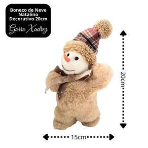 Boneco de Neve Natal Pelúcia Marrom Gorro Xadrez 20cm