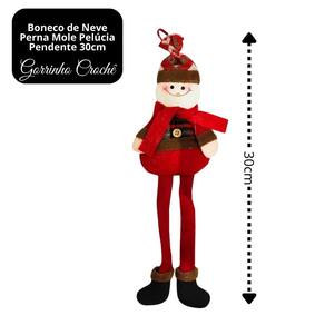 Boneco de neve Pendente em Pelúcia Vermelho – 30cm com Gorro Crochê e Perna Mole