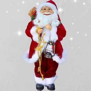 1 Boneco Decorativo Papai Noel Tradicional Com Lampião de 45cm