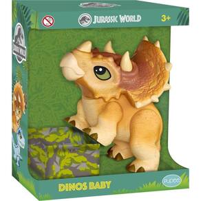 Dinossauro icônico do filme Jurassic World, a Triceratops Baby vem toda estilizada para agradar as crianças.