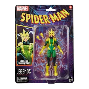 Figura articulada da vilã Electro, na versão Francine Frye, da linha Marvel Legends. Mede cerca de 15 cm e conta com detalhes fiéis aos quadrinhos, além de acessórios com efeitos de eletricidade para poses cheias de ação. Ideal para fãs da Marvel e colecionadores que buscam completar sua coleção Legends.