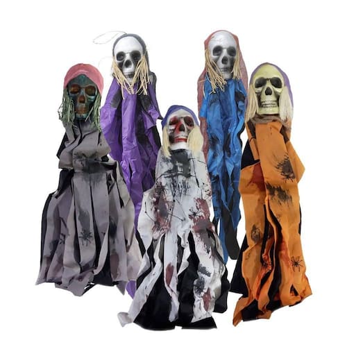 Este boneco esqueleto pirata vem em uma variedade de cores vibrantes, como roxo, laranja, azul e vermelho, permitindo que você escolha a opção que melhor se encaixa na sua temática assustadora.