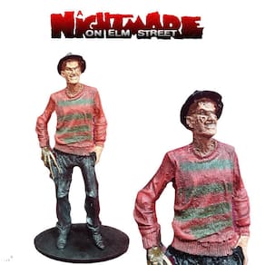 Dos Filmes o assustador Personagem Freddy Krueger que nos proporcionou ótimas cenas de terror e deixou muitos sem dormir, agora em forma de boneco feito em resina totalmente manufaturado veio pra você colecionador deixar sua coleção mais bonita com esse assustador boneco de 18cm e ótimos detalhes realistas e irados, não perca a oportunidade de deixar sua coleção mais irada