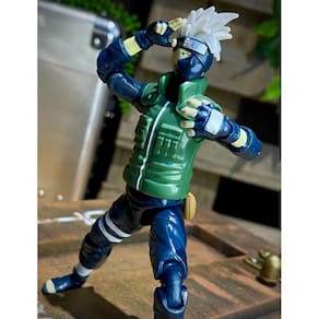 Nesta edição de action figure com 16 pontos de articulação e acompanhada de acessórios da Bandai, Kakashi Hatake, é um Shinobi do clã Hatake e um dos ninjas mais talentosos de Konoha, procurado por conselhos e liderança, apesar de sua aversão pessoal à responsabilidade. Para seus alunos do Time 7, Kakashi enfatiza a importância do trabalho em equipe, ele mesmo recebeu essa lição, junto com o Sharingan e de seu amigo de infância, Obito Uchiha.