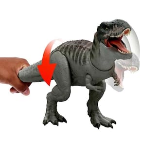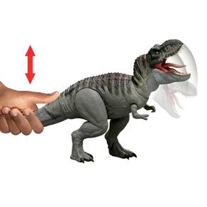 Se mantida pressionada, ele entra em modo frenético, soltando uma sequência de mordidas, luzes e sons. Ideal para brincadeiras cheias de ação, o dino pode até mesmo morder outras espécies da coleção.