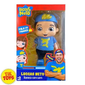 Luccas Neto é o Youtuber mais famoso dos pequenos. Em seus vídeos, conta as histórias de suas aventuras de forma divertida e lúdica, estimulando a imaginação da criançada. E agora com o novo Boneco Luccas Neto, ele pode te acompanhar em todas as suas aventuras também! O boneco do Luccas Neto usa sua tradicional roupa e boné azul, possui 19 cm de altura, confeccionado em material de PVC/plástico e é recomendado para crianças a partir de 03 anos.