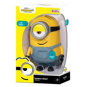 O Stuart é o mais inteligente e divertido dos Minions, essas criaturinhas amarelas e engraçadas que vivem as mais malucas aventuras a mando do vilão mais amado do planeta, o Gru. Aperte a barriguinha do Stuart que ele fala frases e palavras "minionese", a língua dos Minions!