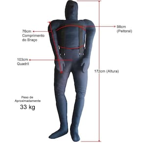 boneco desenvolvido com pés, braços, pernas, tronco, pescoço, cabeça, etc. Com tamanhos reais e distribuição proporcional de peso anatomicamente correta dando a sensação de uma vítima inconsciente, ou seja, um peso morto, demonstrando assim as dificuldades de lidar com uma vítima inconsciente adulta. Um boneco bem versátil para cenários de resgate e emergência, evacuação de vítimas, recrutamento de bombeiros e teste de condicionamento físico. Pode ser utilizado também para prisões e estabelecimentos correcionais no treinamento para a evacuação de prisioneiros contidos ou inconscientes em uma situação de emergência, com punhos no tamanho real é perfeito para acomodar e usar na prática as técnicas de contenção. Características do produto: - produto 100% nacional; - material de alta resistência com costuras reforçadas; - altura de 172cm; - ideal para cenários de resgate e emergência. - cor: azul marinho - produto segue vazio. com ele cheio seu peso pode variar de 26 até 50kg, daremos todo o suporte e dicas de como deve ser realizado o enchimento . Garantia: garantia de 90 dias para defeitos de fabricação. Como cuidar do seu boneco fred hard: - para prolongar muito a vida útil do boneco, recomendamos que ele use uma vestimenta constante e um calçado adequado; - não deve ser submetido a alvejamento com cloro ou usar qualquer outro produto químico; - não passar quente; - a lavagem a seco é vedada; - limpeza apenas com um pano limpo e levemente umedecido;