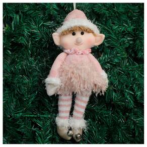 Boneco Pendente Natal Duende Mamãe Noel Rosa 30cm