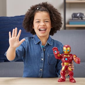 A brincadeira de faz de conta fica muito mais emocionante com o Boneco Playskool Marvel Super Hero Adventures Mega Mighties Homem de Ferro E4150 Hasbro - 25 cm! Ele é perfeito para os pequenos fãs do Homem de Ferro. Tem design detalhado com 30 cm de altura. Assim as crianças conseguem segurar e mover o boneco com total facilidade. Além disso, possui 3 pontos de articulação: pescoço, braços e cintura.