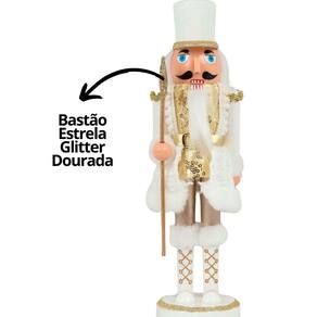 -01 unidade Quebra Nozes Decor Branco e Dourado Luxo 28cm com Bastão Estrela Dourada - Magizi