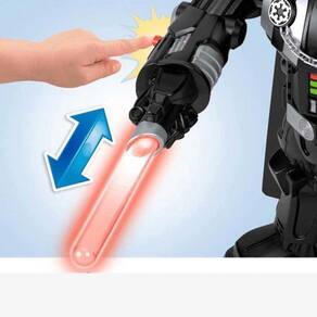 O lado negro da força nos espreita! As crianças poderão ser parte de Star Wars com nosso Vader-Bot. Este bot mede mais de 60 cm de altura e com luzes e sons clássicos de Darth Vader. As crianças poderão usar o Stormtrooper fundido a pressão para girar o botão de poder e revelar o canhão escondido no torso do Vader. Ao girar o botão de poder novamente lancarão projéteis de disco. Com outro botão de poder, o canhão irá girar e fará a recarga para lançar de novo. Com o botão de ligar no braço de Vader as luzes e os sons no sabre de luz se ativarão. As crianças poderão descobrir muito mais surpresa dentro deste incrível Vader Bot.Inclui Vader Bot e uma figura de Stormtrooper Diecast de 7cm.Marca: MattelCódigo de barras: 194735229215Modelo: HXG51Idade: +4 anos
