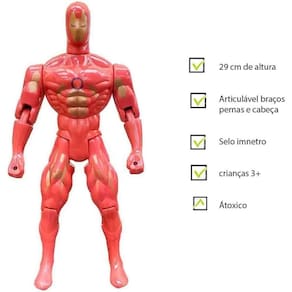 Medidas do boneco: 29 cm altura x 15 cm largura x 6 cm profundidade.