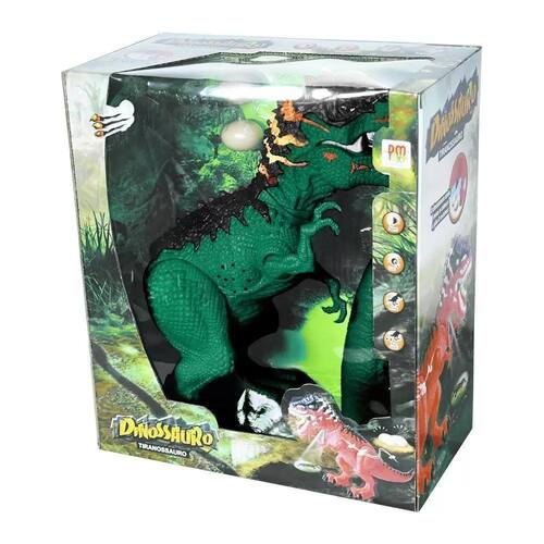Esse boneco é recomendado para crianças acima de 3 anos e possui o selo de segurança do InMetro. A embalagem contém 1 Boneco Tiranossauro a pilha e 2 ovinhos de plástico. As cores podem variar entre as imagens mostradas acima e o produto.