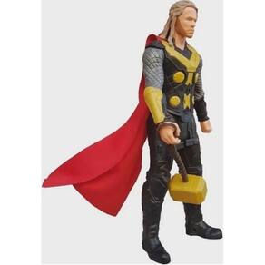O Boneco Thor Marvel Titan Hero Avengers 30Cm possui altura de 30cm, ideal para brincadeiras e colecionismo.
