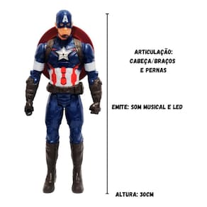 Boneco capitão américa 30cm de altura, articulado e com led.