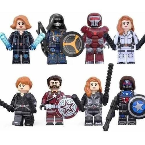 Inclui Bonecos Blocos De Montar Filme Viúva Negra Marvel Viúva Negra Marvel 8 bonecos Viúva Negra, Taskmaster, Capitão da URSS e outros, Conforme A Imagem